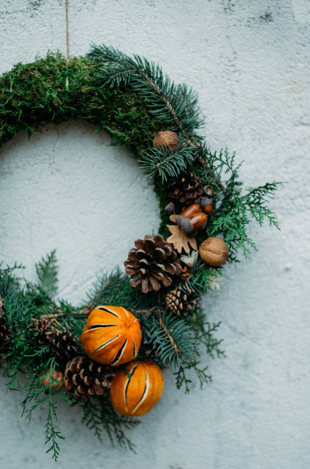 Coronița de Crăciun pentru ușă cu tot ce are natura mai frumos.